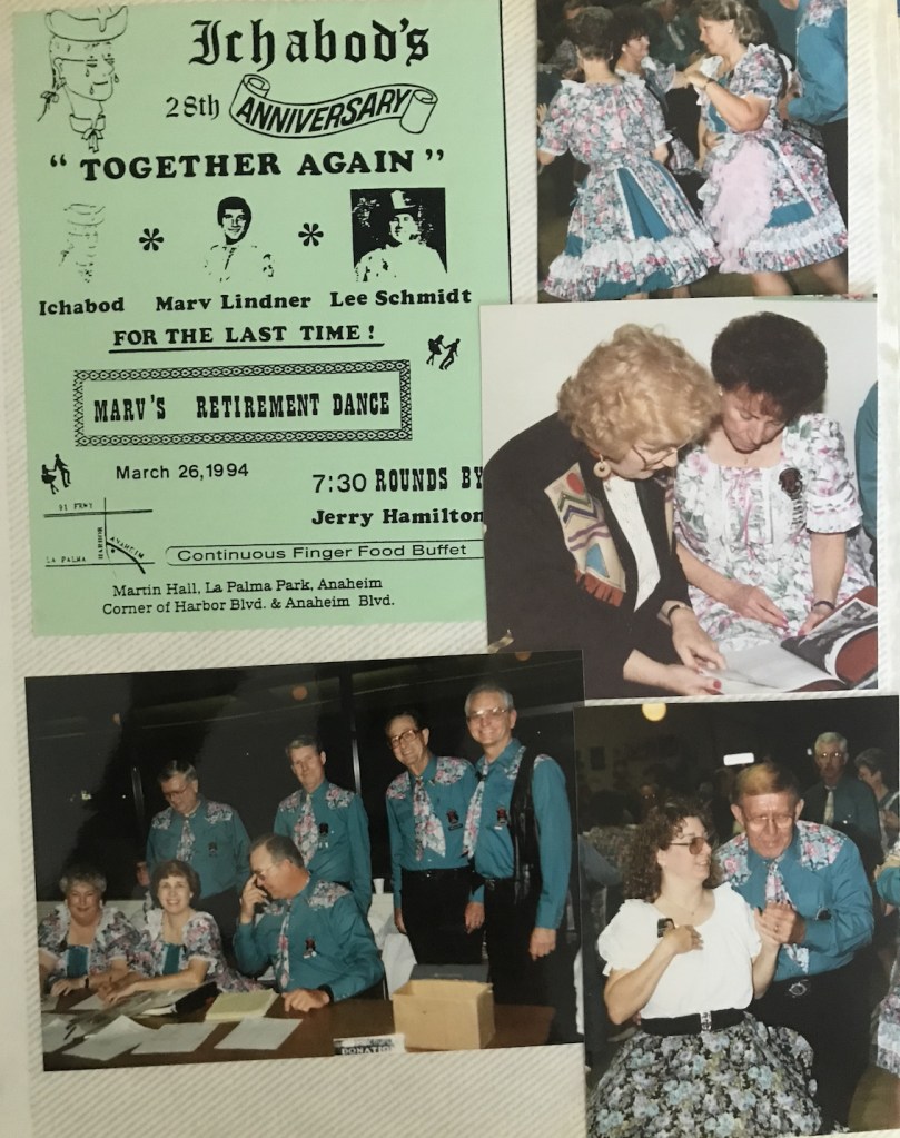 Marv was teaching a new class in a place called Sleepy Hollow in Carbon Canyon during approximately 1966. No club was involved but when the class finished, the class members formed a new club and named it Ichabod Squares. I was a member of the class but did not join the club. As I recall, the dancing in Sleepy Hollow was outdoors and when the weather became cold they moved to Fullerton, CA. (Written by Ralph Housman).