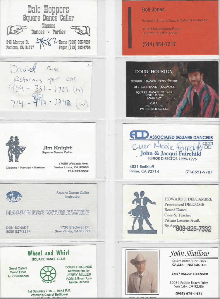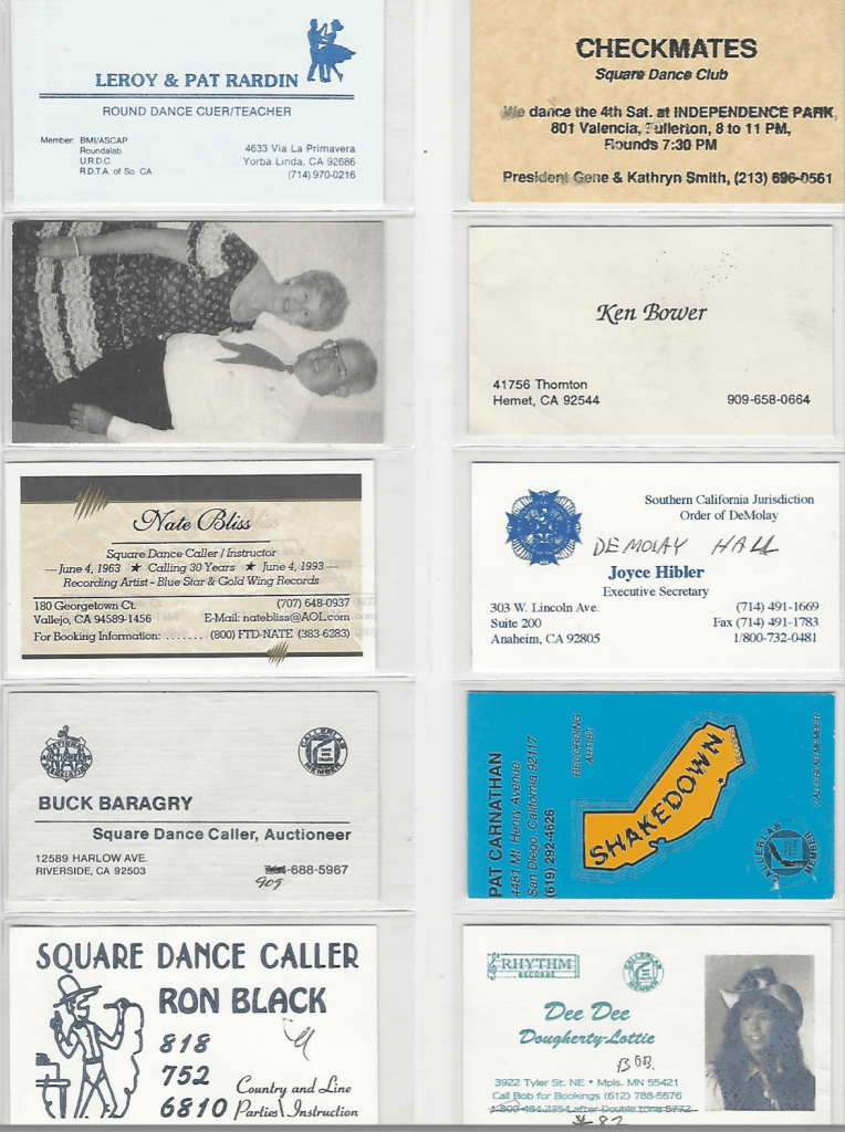 Out of the archives of the Ichabod Square Dance Club these caller’s and cuer’s business cards represent decades of dancing.